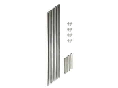 W skład kompletu wchodzą 4 rurki metalowe o średnicy 16mm oraz plastikowe uchwyty mocujące.