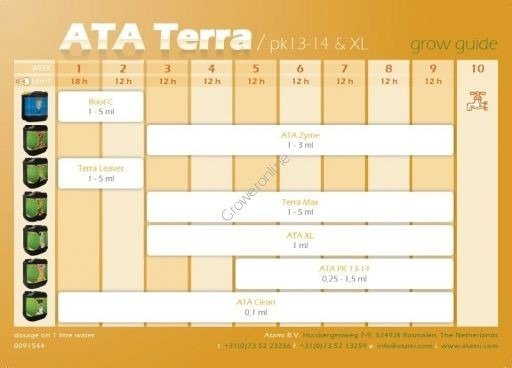 - Atami Terra Max to kompletna pożywka na OKRES KWITNIENIA o starannie dobranym składzie, która zapewnia roślinie wszystkie niezbędne na ten czas nawozy.