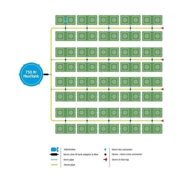 System dozujący wodę AQUAvalve, odpowiada za dostarczanie wody, blokowanie dopływu, dzięki czemu korzenie mogą wykorzystać nalaną do podstawki wodę, przeschnąć, zarazem dotlenić, po czym podstawka znów jest napełniana do poziomu 20 mm.